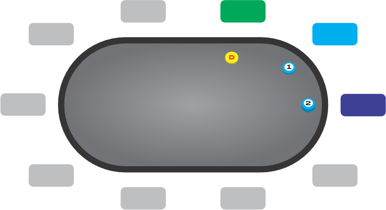 Essas apostas não são feitas aleatoriamente, mas sempre pelos dois jogadores à esquerda do dealer. A posição do dealer circula pela mesa no sentido horário, então a obrigação de colocar as blinds também circula entre os jogadores nessa direção. Para facilitar o reconhecimento do dealer, uma ficha especial é colocada na frente do jogador que está atualmente sendo o dealer. Essa ficha é chamada de Button, ou Dealer Button.
