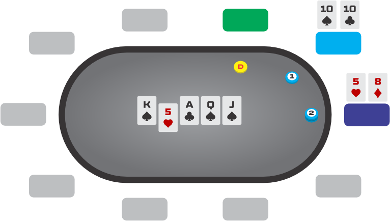 Uma vez que todos os jogadores tenham agido, todas as apostas são coletadas e colocadas no centro da mesa. Isso é chamado de pote. Quem vencer a mão leva o valor correspondente do pote.