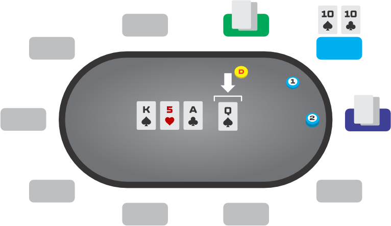 Neste momento, começa a segunda rodada de apostas, durante a qual as apostas são coletadas e adicionadas ao pote. Em seguida, chega a vez do “turn”.